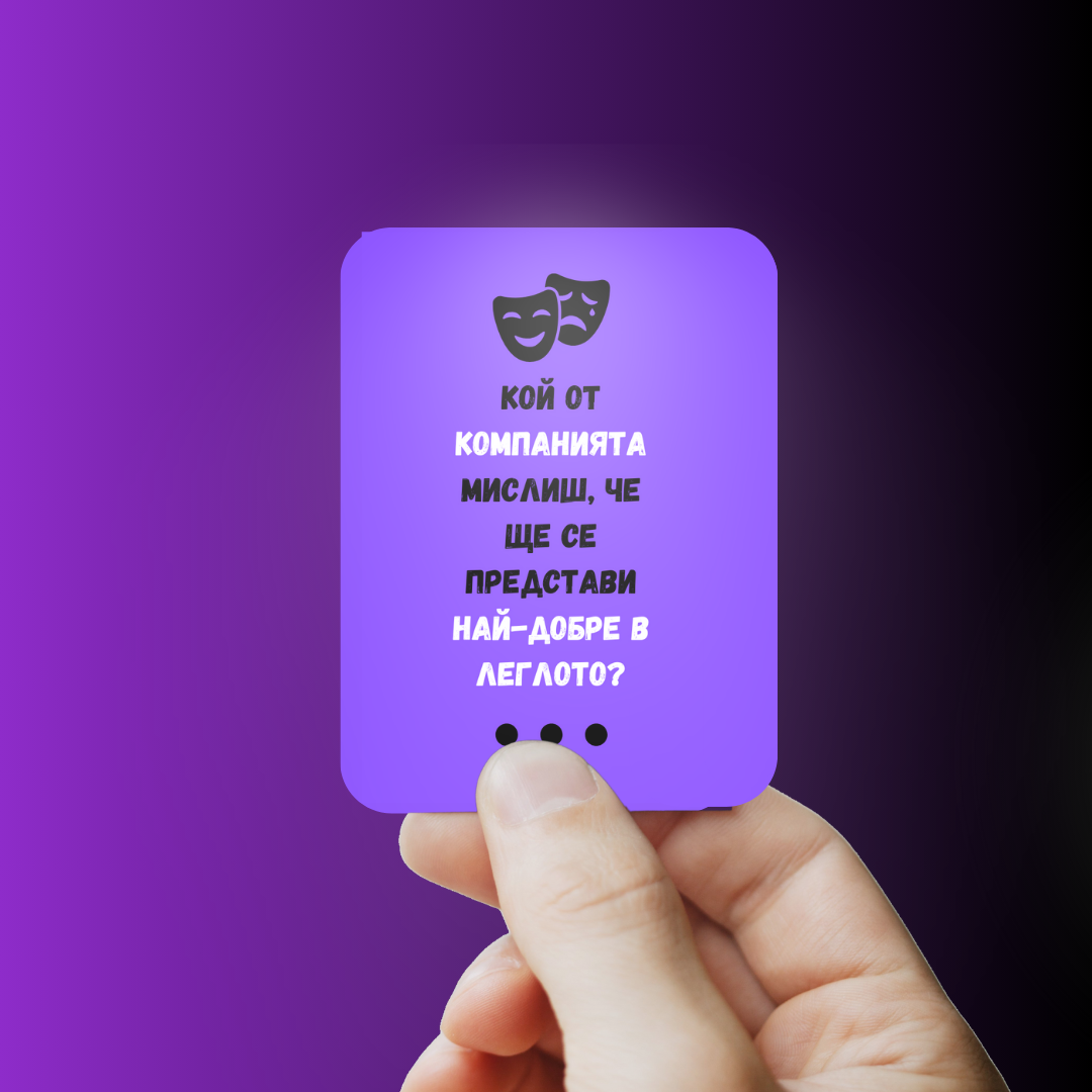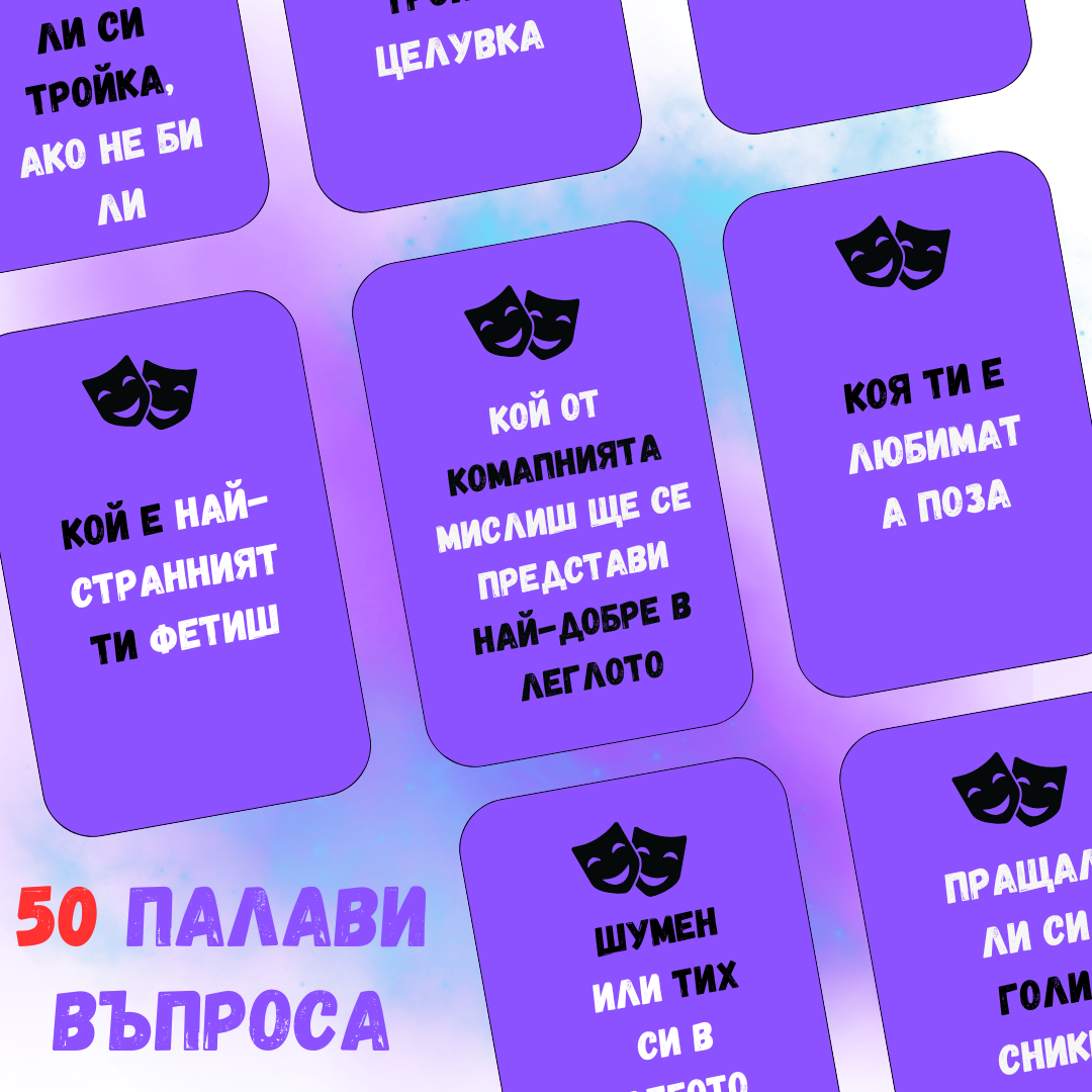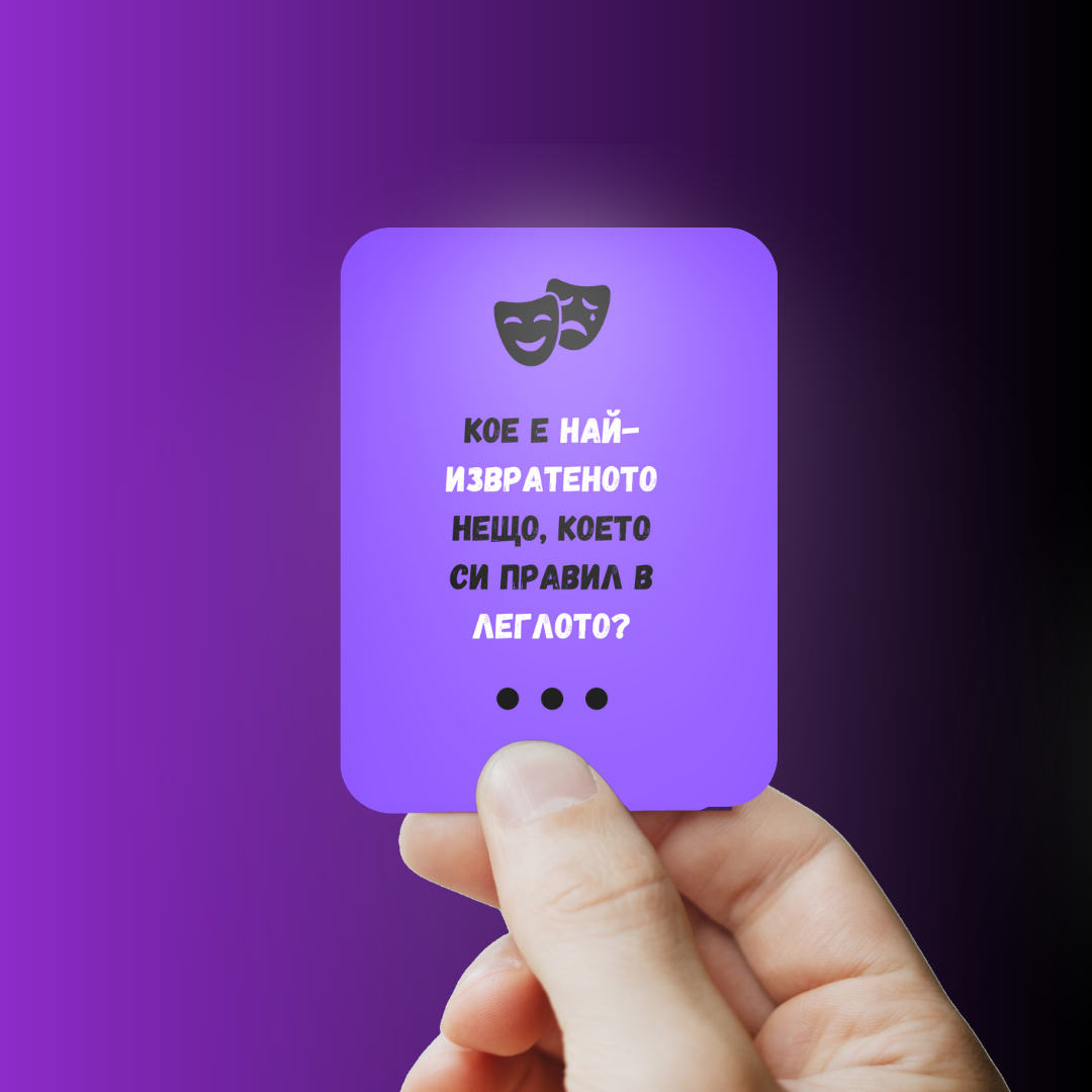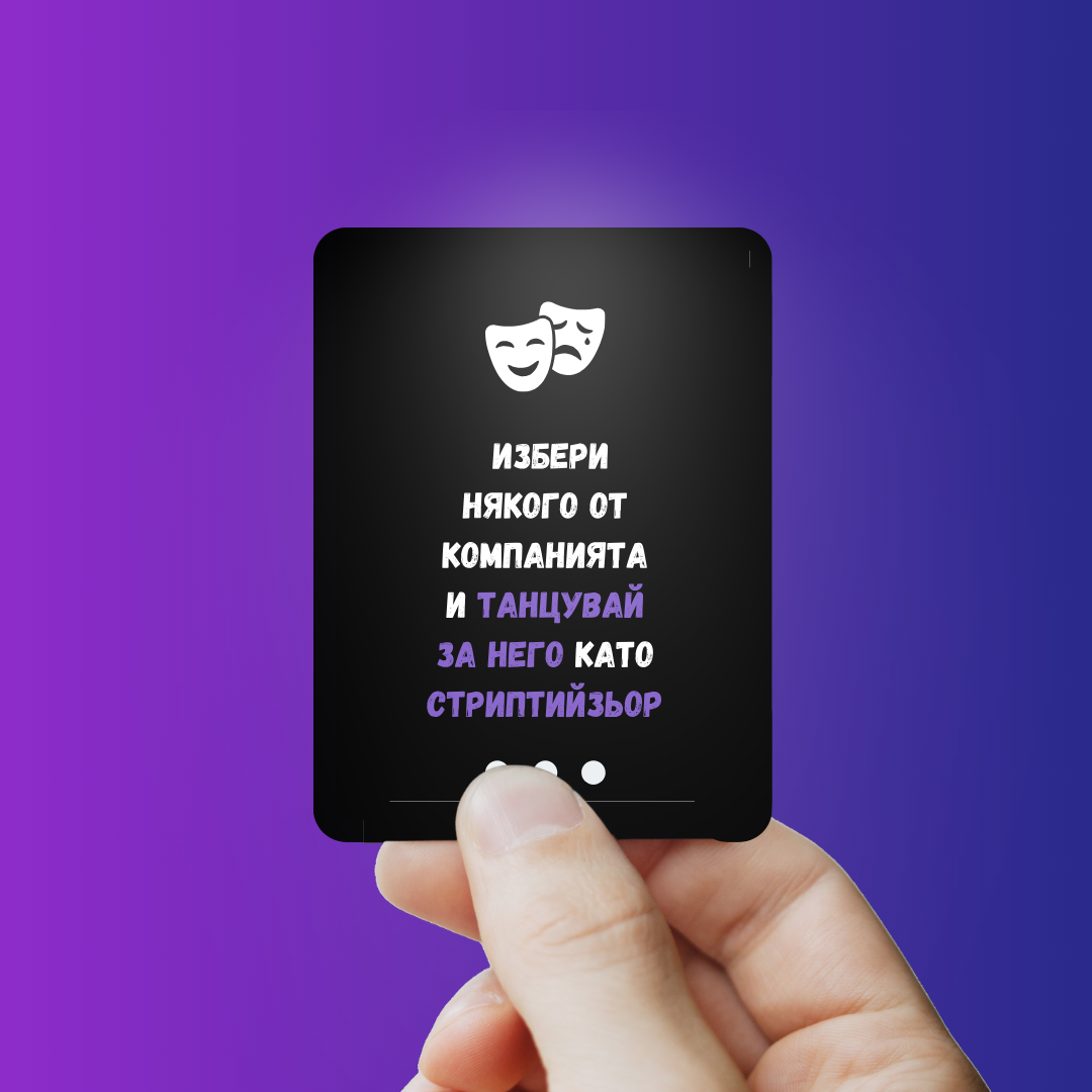 Спокойно – знаем, че повечето подобни игри са пълни с basic и скучни карти. Именно затова в „Свалете Маските“ сме събрали само най-провокативните и скандални въпроси и предизвикателства! Няма нищо общо с останалите сухи игри на пазара!